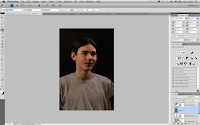 After choosing our favourite pictures in Adobo Bridge, we tried various ways of editing in Adobe Photoshop. We used two different, one of our actor facing the camera and one of him looking away. Both images are shot with a year book style. We took the photographs in our school studio where we could control the lighting and had a black back drop. This brought simplicity to our shoot.